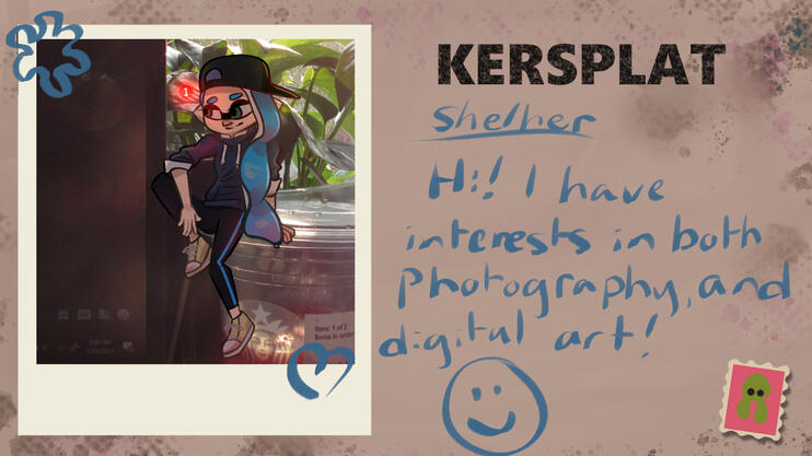 Kersplat, or Ker, is the other co-host. In fact, one of her artworks inspired the zine's concept! She has interests in art and photography, and edits them to make them look their best! Previously, she was a host of Dedf1sh zine.